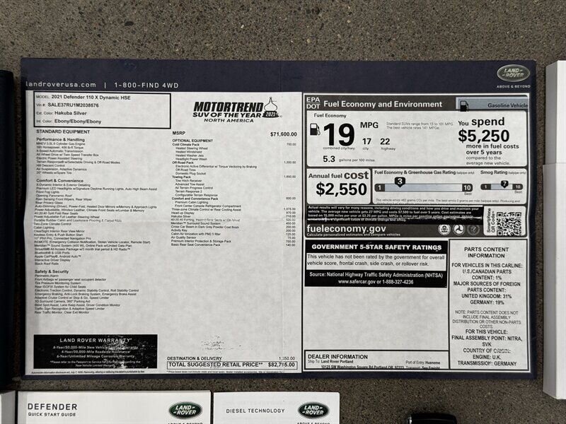 2021 Land Rover Defender 110 X-Dynamic HSE AWD One Owner Hakuba Silver Metallic Ebony Windsor Leather Seat Trim Driving Assistance Parking Assistance 360 Rearview Camera With Just 71,933 Miles