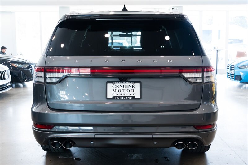 2021 Lincoln Reserve Aviator Gray 3.0L V6 10-Speed Automatic AWD CARFAX One-Owner. 30-Way Perfect Position Seats w/Active Motion, 4-Pin & 7-Pin Connectors, Active Park Assist Plus, Adaptive Cruise Control w/Traffic Jam Assist, Adaptive Pixel LED Headlamps, Adaptive Suspension w/Road Preview, Air Glide Suspension w/Dynamic Lower Entry, Auto Air Refresh, Auto Heated/Ventilated Driver & Passenger Seats, Blind Spot Detection w/Cross Traffic Alert, Class IV Hitch & Wiring, Class IV Trailer Tow Package, Convenience Package, Dynamic Handling Package, Elements Package Plus, Equipment Group 210A, Evasive Steering Assist, Head-Up Display, Heated Steering Wheel, Heated VisioBlade Wipers, Heated/Ventilated 2nd Row Outboard Seats, Illumination Package, Lincoln Co-Pilot360 Plus, Lincoln Lit Star in Grille, Luxury Package, Phone As A Key, Radio: Revel Ultima 3D Audio System w/28 Speakers, Rear Door Sunshades, Reverse Brake Assist, Smart Trailer Tow, Trailer Sway Control, Wheels: 22'' Black Aluminum, Wireless Charging Pad.