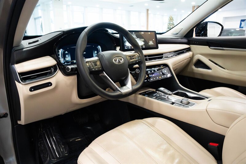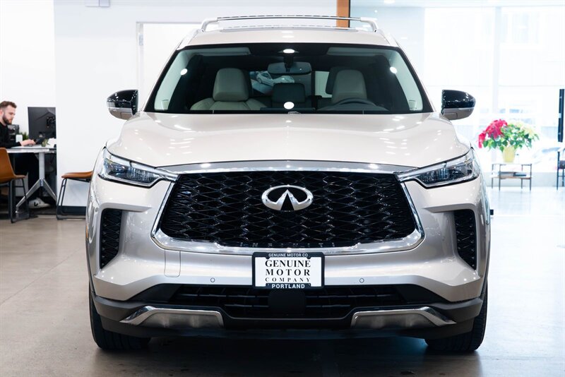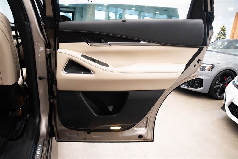 2022 INFINITI Sensory QX60 Clean CARFAX. Warm Titanium 3.5L V6 AWD 3rd row seats: bench, Cargo Mat (Reversible), Cargo Package, First Aid Kit, Heated & Cooled Front Bucket Seats, Power Liftgate, Power moonroof, Roof rack: rails only, Splash Guards.