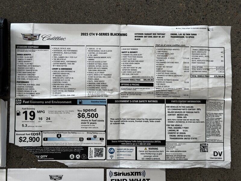 Genuine Motor Company is proud to offer this 2023 Cadillac CT4-V Blackwing, a well maintained vehicle with just 25,958 miles. This Cadillac CT4-V Blackwing comes well-equipped with options such as Radiant Red Tintcoat, Sky Cool Gray w/ Jet Black Accent w/ Leather Seating Surfaces, Transmission 10-Speed Automatic, 3.6L Twin Turbo V6 Engine, Wheels: Mold-Form Forged Beyond ADVAN Racing GT Wheels, Performance Data & Video Recorder, Adaptive Sport Suspension, High Performance Rear Differential, Apple Carplay, Glass Power Sunroof, Performance Leather Wrapped Steering Wheel W/ V-Mode Button, AKG Premium 15-Speaker Sound System, Driving Assistance Package, HD Rear Vision Camera, Adaptive Cruise Control, Drive & Reverse Enhanced Automatic emergency Braking, Technology Package, Navigation, Head-Up Display, Climate Package, Heated & Ventilated Front Seats, and Power Lumbar Front Massage Seats.